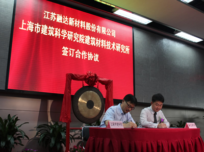 在掛牌活動中,總經理楊亮與上海市建筑科學研究院建筑材料技術研究所簽訂合作協議。公司將利用上海建科院的技術優勢、豐富經驗,進一步提高本公司人員的技術水平,不斷研發新產品,提高產品質量,更好的為社會做貢獻。為建設綠色環保的建材市場而不斷努力!